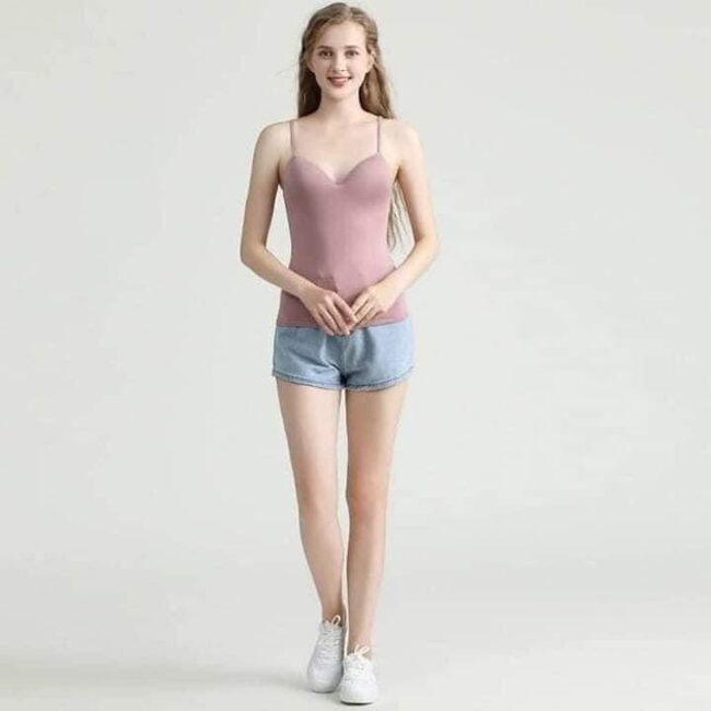 An amazing basic with a built in Bra feature comes even in beautiful colors. The scooped neckline of Built In Bra Padded Camisole helps make this camisole a great piece to layer under anything, it’s also a solid stand-alone tank top with a supportive built-in shelf bra that has soft padding. The spaghetti shoulder straps adjust in the back and it comes in eight colors, including neutrals and shades like coral and olive green.