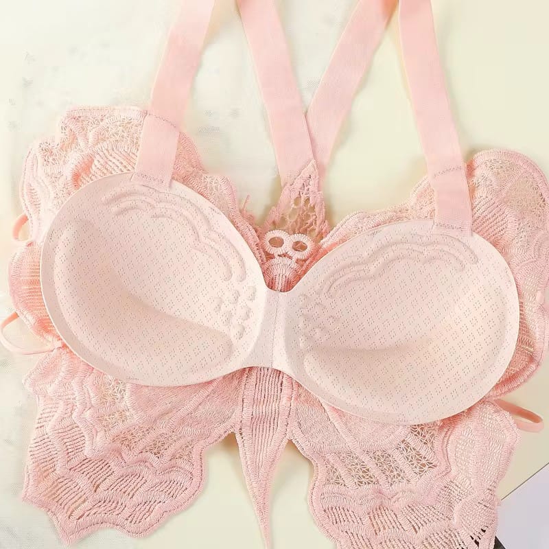 Butterfly Lace Halter Bralette – Backless & Adjustable Straps