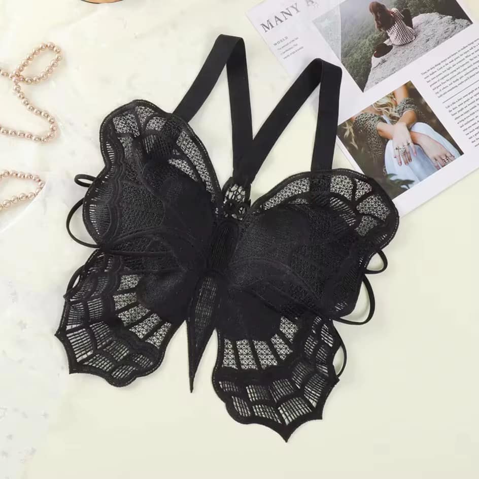 - Charming Butterfly Design: The front features an adorable butterfly-shaped lace overlay, creating a captivating and feminine focal point.