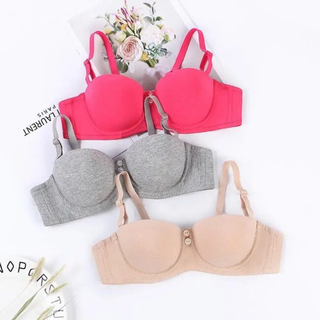 The Breathable Inner Padding Button T-Shirt Demi Cup Bra is crafted with your comfort in mind. The innovative inner padding ensures a soft and gentle touch against your skin, offering a seamless and comfortable fit throughout the day. Say goodbye to discomfort and embrace the blissful ease of this remarkable bra.