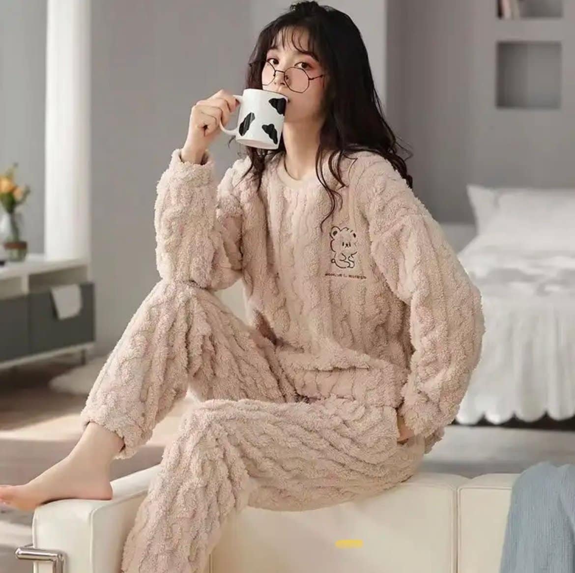 Mskoleksiyon’s winter cord sets are the perfect blend of warmth and style. Crafted from high-quality materials, these coordinated Camel Furry Fleece Oversized Night Dress PJ offer both comfort and fashion during the chilly months. With a variety of designs and color options, they’re a must-have for the winter season. Funky and printed night dress / pajama bottoms are loved by all. This Warm Fleece Night Dres featuring a full sleeve oversized loose fit top and pants have a relaxed fit for your undisturbed sleep. This night dress is ideal for you, if you don’t prefer mix-match night wears. Soft at touch and comfortable at night, this peter Women Night dress, loungewear should have some space in your closet. Shop more warm night dresses HERE