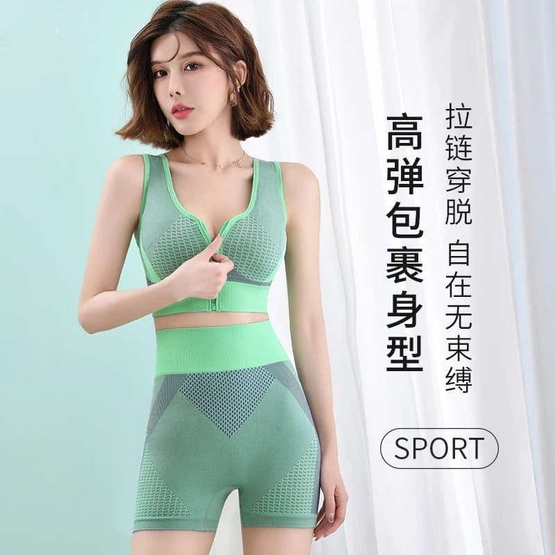 Our Gym Work Out Sports Bra can limit chest bouncing off of the range to protect the breast from suspension ligament damage. It has good support protection, through the uniform tension retainer to support the weight of the breast, rather than simply the chest compression. These Front Open Padded Sports Bra Panty Set are designed to provide maximum sport during workout sessions either at home or outdoor. They are made of flexible absorbent cotton that helps keeping the sweat away and makes your work out comfortable. More like this explore hereÂ