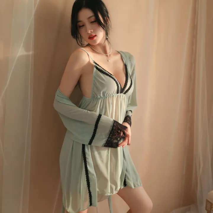Pajama and short length shirts are everyone’s pick. But this MS Lingerie Three Piece with Gown is distinctive in its own way.