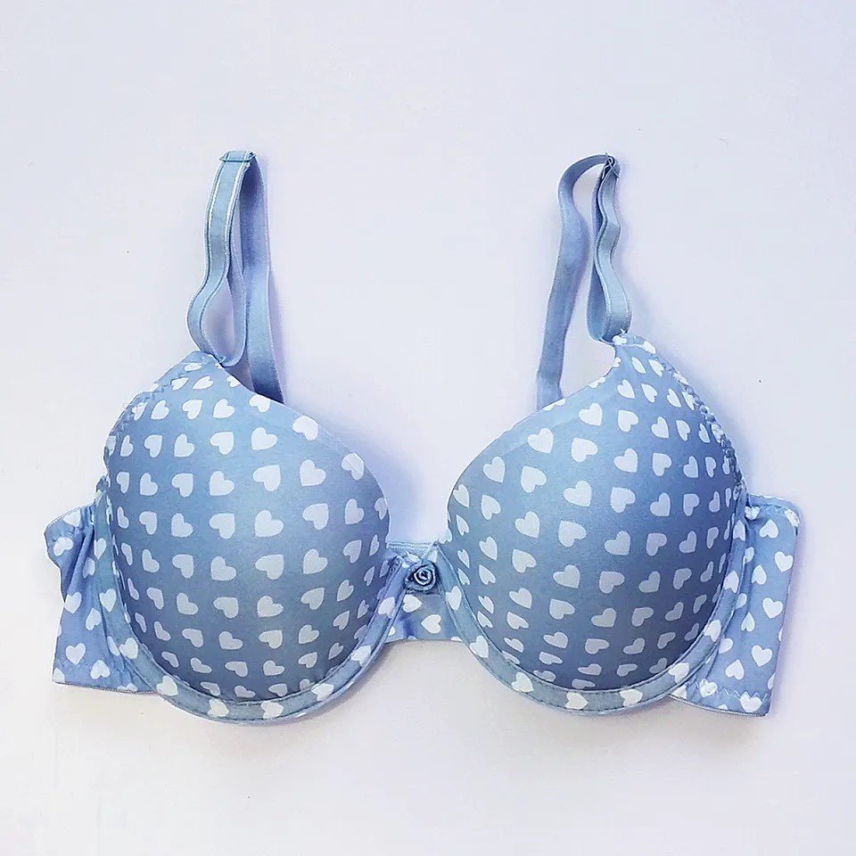 There is a lovely heart shape print with no obvious pattern or mesh at all. These underwired beautiful elegant t-shirt bra has a rhinestone drop in the center. You get great support and real comfort. A must-have if you want that push-up look. This can be worn with a T-shirt and a dress. It has subtle look that is not prominent under see through dresses.