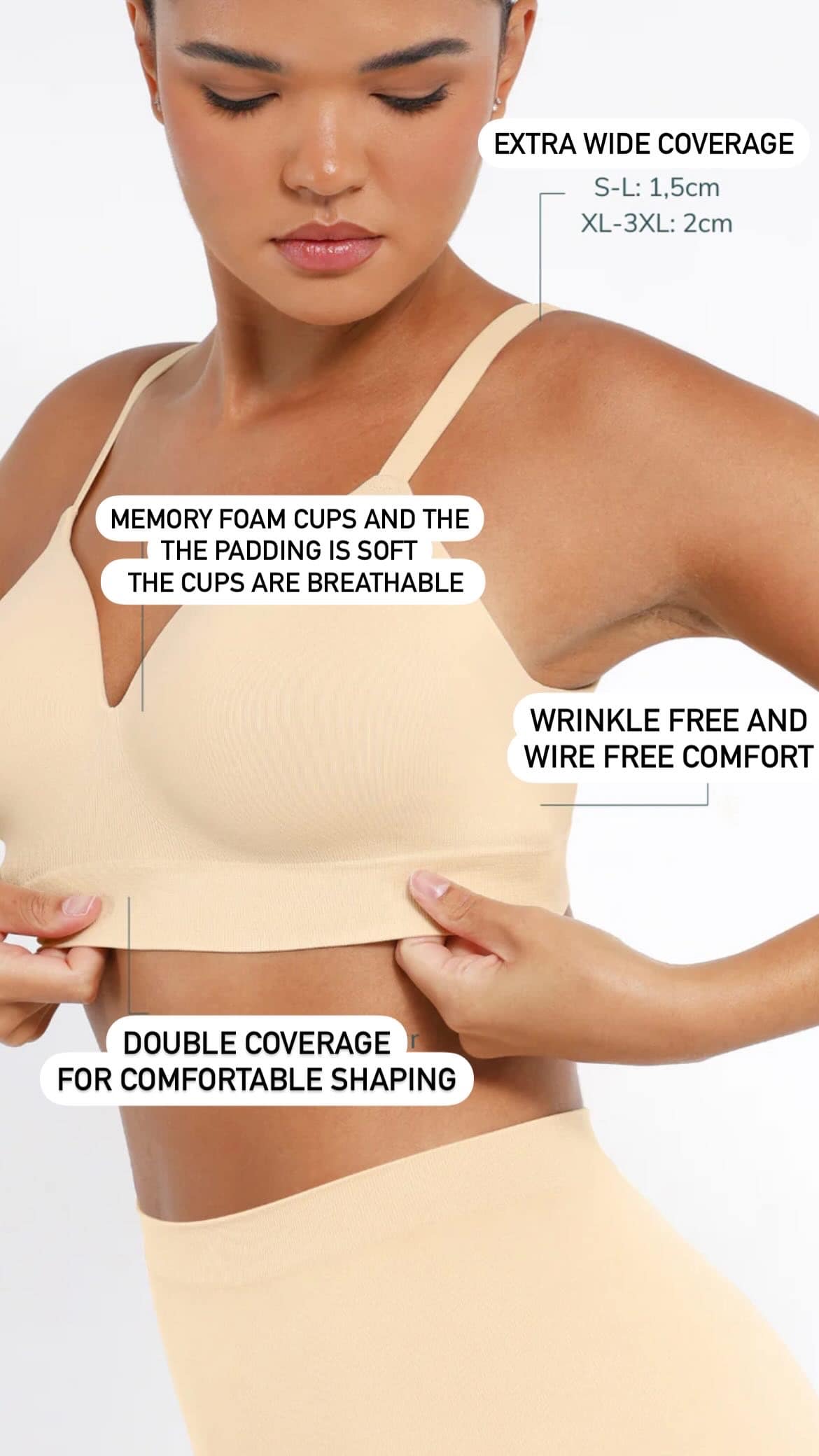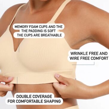 Non-wired full coverage bra with memory foam cups that contour and support