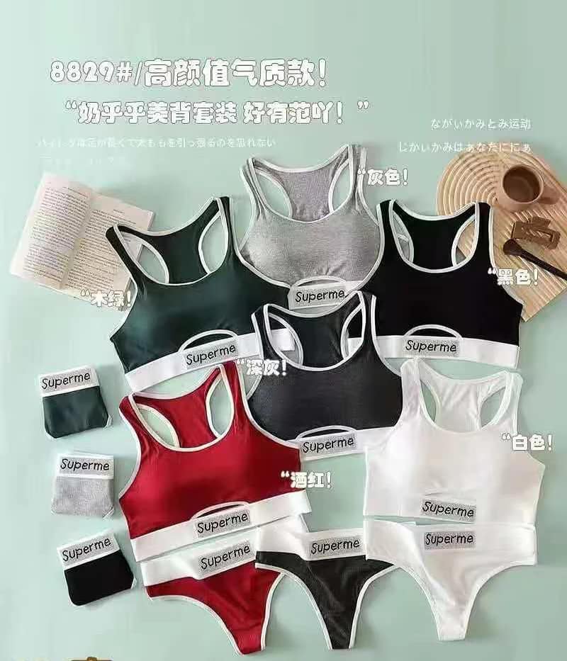 Find your perfect rhythm with the MSK cardio workout sports bra panty set. Designed for high-performance comfort, this set is made with a breathable and stretchy fabric that moves with you. The sports bra offers confident support for any cardio activity, while the matching panty provides a seamless, comfortable fit. The wide elastic band, featuring the trendy “Superme” logo, adds a chic, athletic flair that proves you can be both comfortable and stylish.