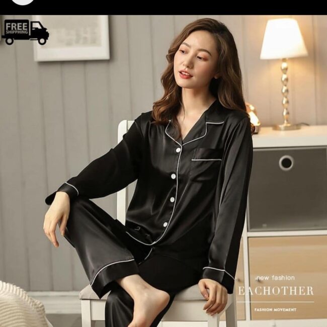This two piece Silk Night Suit Loungewear comes with a button down shirt and trouser. This night wear is perfect to amp up your love for breathable pajamas. This set has a soft silk fabric that is highly recommended for daily comfort. The shirt has a collar neck made with white line detailing. On the other hand, the pajama have an elasticated waistline and hem frill detailed for extra style and comfort.