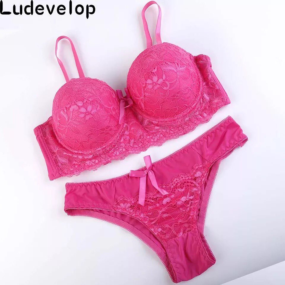 This is thong double padded wired bra along with thong panty provides half coverage with a demi cup support. No worries if you are a plus size and unable to find a pretty set for your self. Here you go with our thong bra set providing great support yet real comfort—a must-have if you want that push-up look. This can be worn with a T-shirt and a dress. It has breathable mesh over with a cotton inside padding.